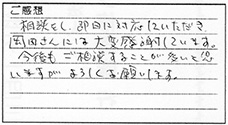 今回は大変お世話になりました。迅速で正確な対応、リーズナブルな料金。